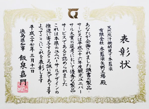 当社の本藍染体験事業は、徳島県が認定する平成26年度 観光ユニバーサル大賞を受賞しております。